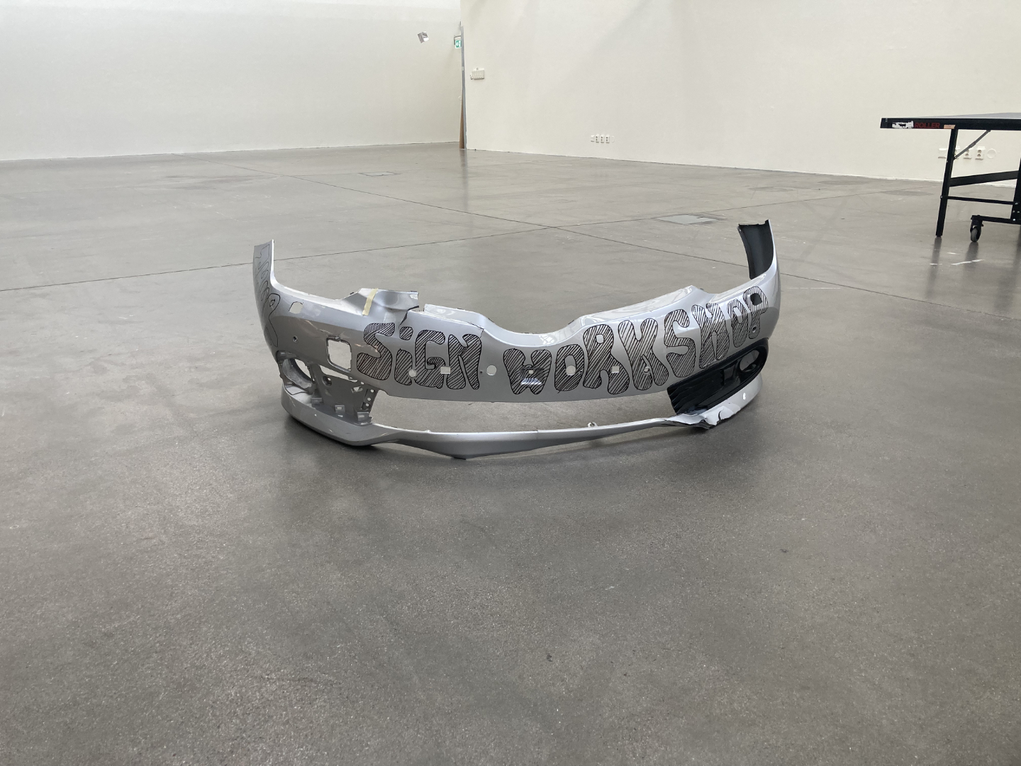 To advertise the event (and the Global Climate Strike on the 19th of April) i sent out an email to all students and staff at Konstfack and placed a second Trash Poster in Havet two days in advance, this one made of a car bumper that i found in the trash.